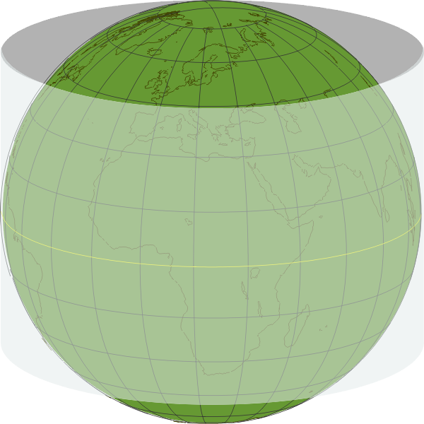 The flip side is that along the equator, cylindrical projections have zero distortion, because there's no separation between the cylinder and the globe, no geometric transformation. Now suppose we could turn that cylinder 90° and wrap it around a meridian instead, then that meridian would be faithfully represented, and the area immediately around it minimally distorted. We could do that to any meridian, producing a true representation of any part of the world. If we then applied Mercator math to the surroundings, we'd have shape conformity. And by keeping those surroundings quite small, we could put a lid on the worst-case distortion, and be able to measure distances, bearings, everything, with minimal error. This is the concept behind transverse Mercator projections.